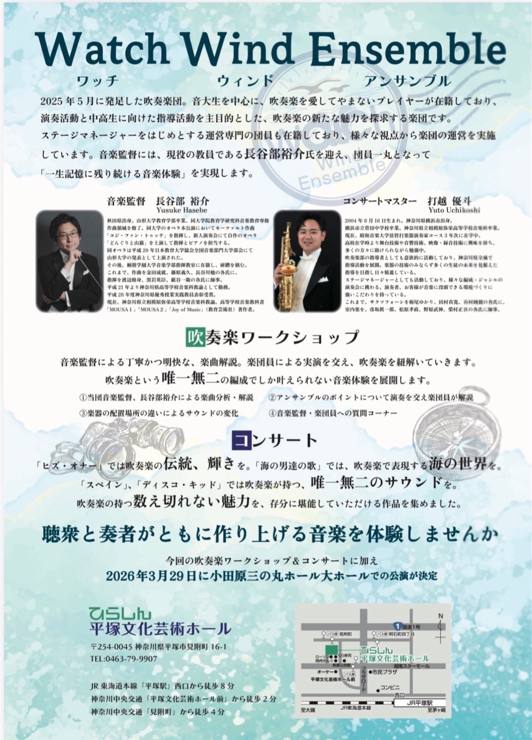 | 催事名 | Watch Wind Ensemble 吹奏楽ワークショップ&コンサート | |