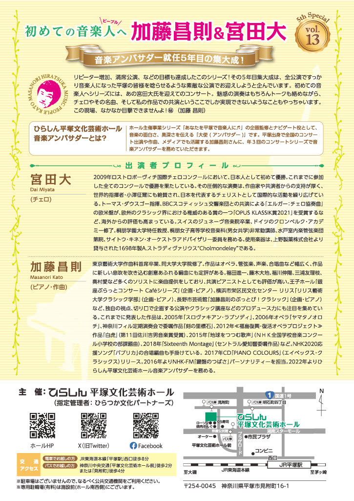 今後の公演情報は、ひらしん平塚文化芸術ホール イベントページでご紹介してまいります。