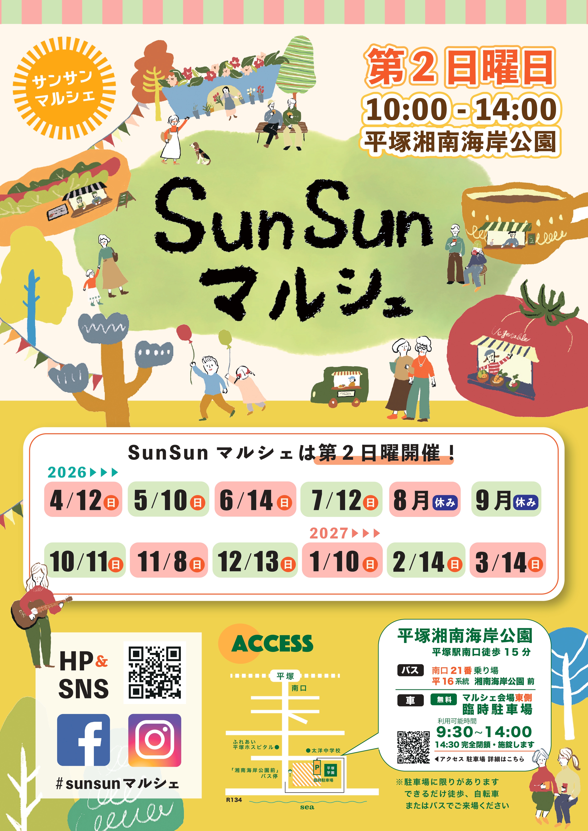 毎月第2日曜日に、湘南海岸公園で開催されるSunSunマルシェ。